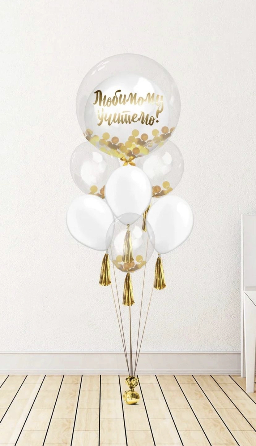 - 1 большой шар Bubbles с конфетти и надписью ( 60 см)