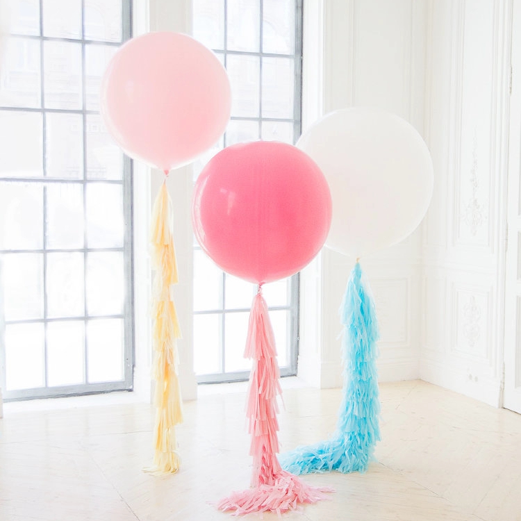 Набор состоит из трех огромных воздушных шаров, наполненных гелием, диаметром 90 см.