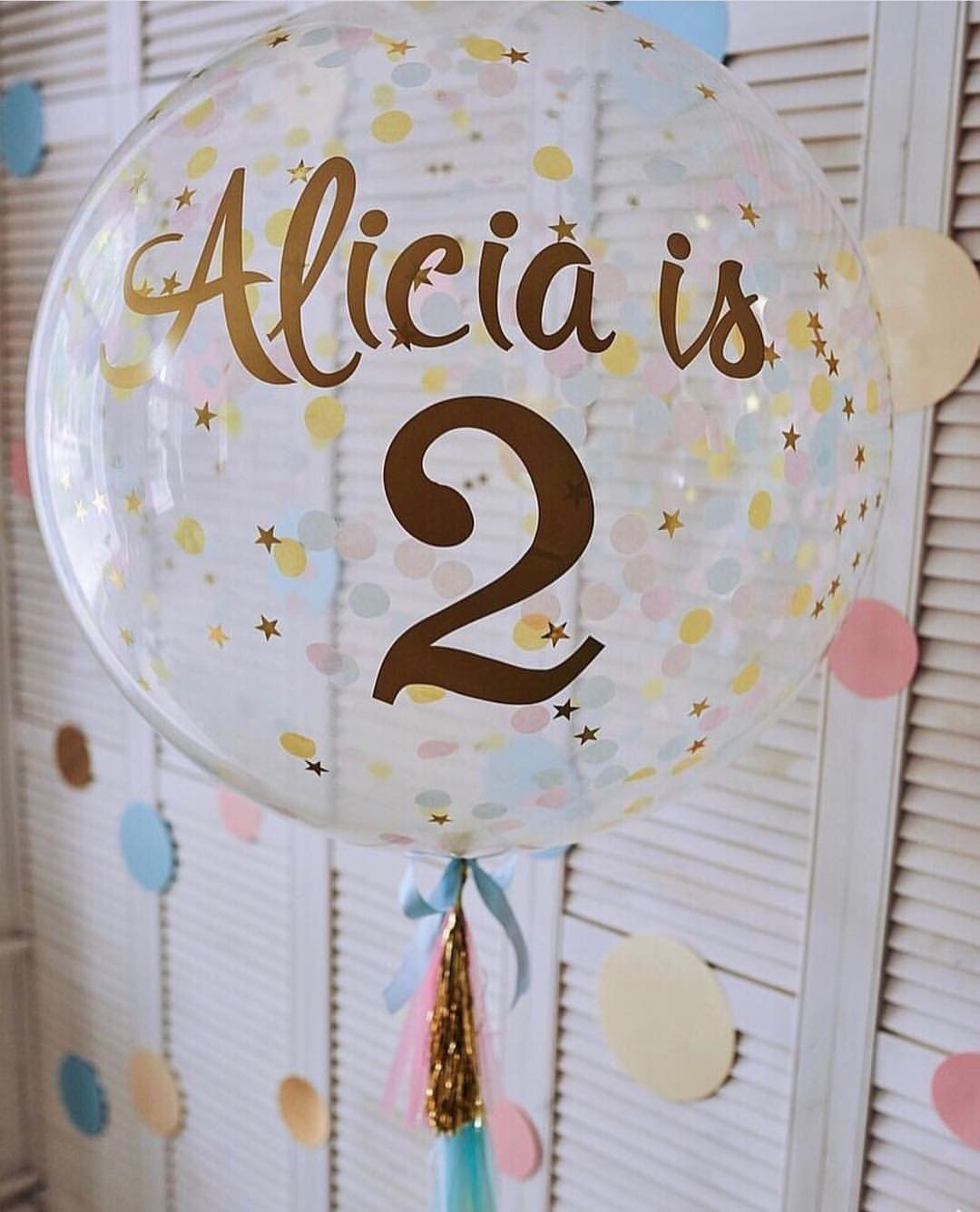 Огромный прозрачный шар с конфетти,гирляндой и надписью ( можно изменить надпись,гирлядну и конфетти ) (70 см) (3)