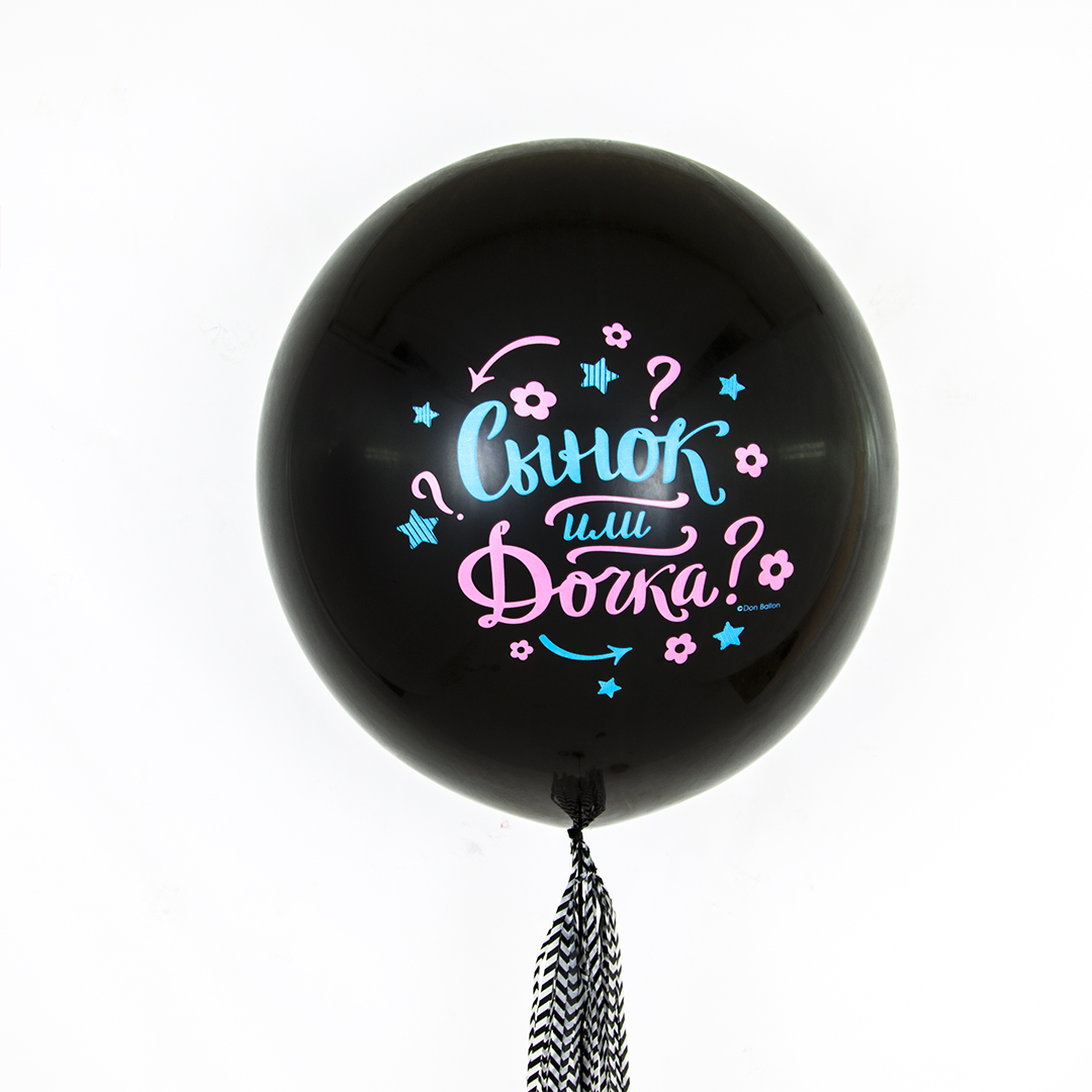 Большой черный шар с рисунком и конфетти на гирлянде (можно изменить цвет конфетти) (60 см) (3)