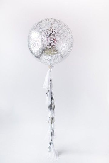 Большой прозрачный шар с серебряным конфетти на гирлянде (можно изменить цвет конфетти) (90 см) (3)