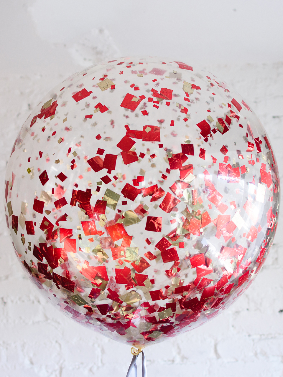 Большой прозрачный шар с золотым и красным конфетти (можно изменить цвет конфетти) (60 см) (3)