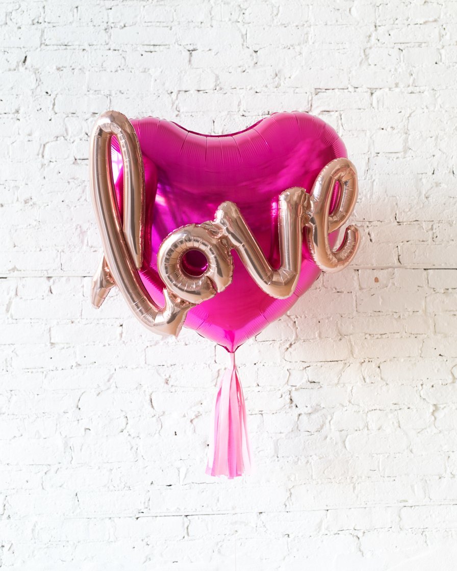 - 1 Большое фольгированное сердце фуксия на гирлянде (80 см)