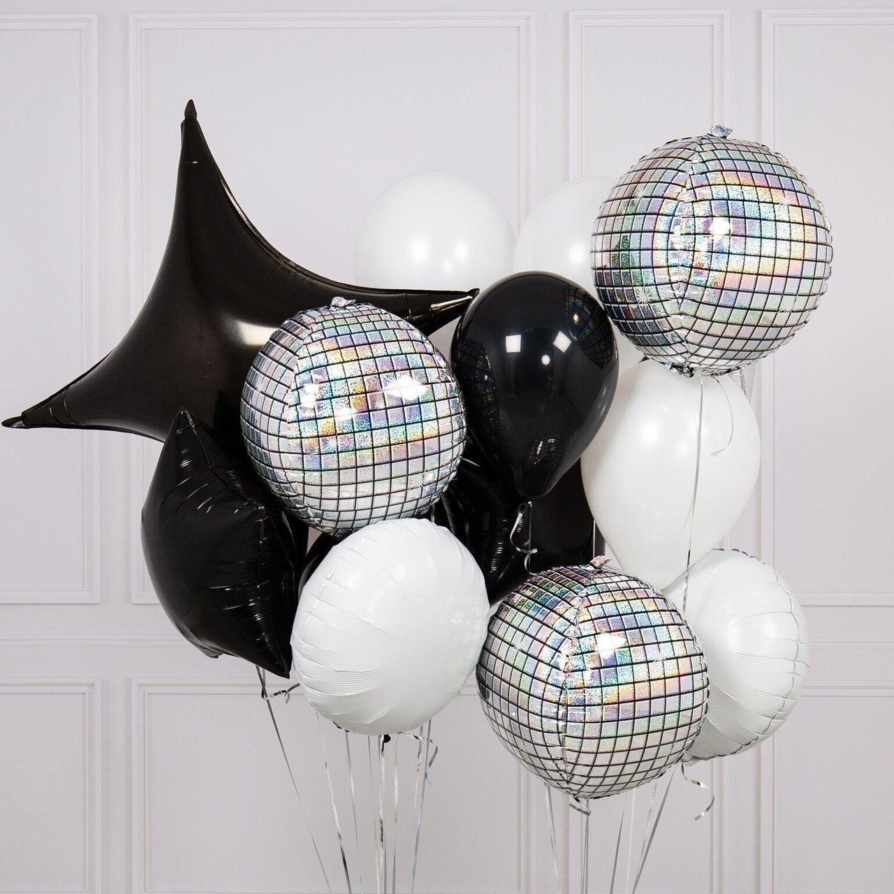 - 3 фольгированных сферы серебро Диско ( 61 см)