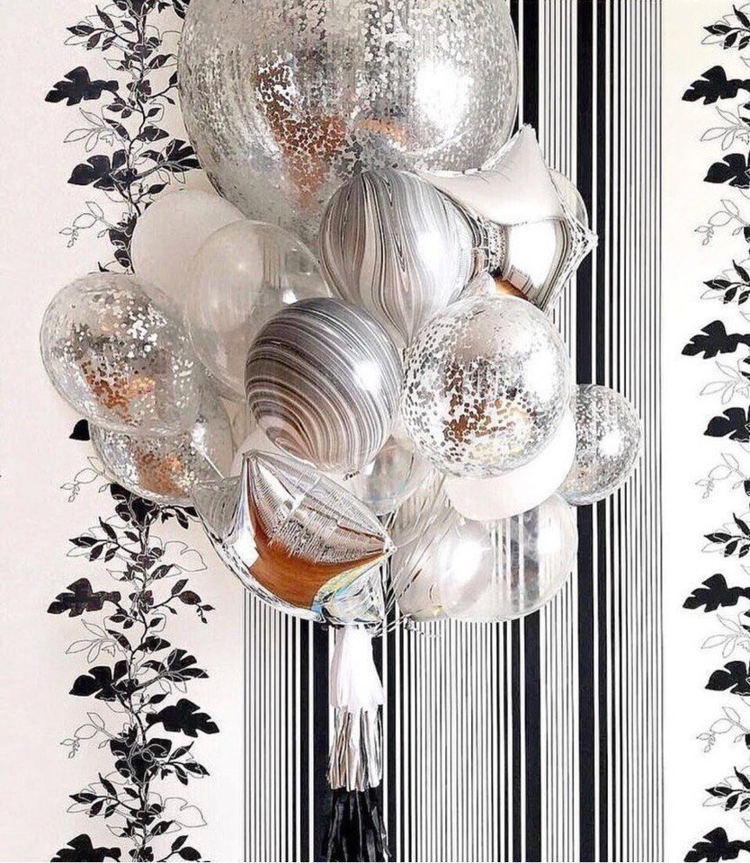 - 1 большой шар с конфетти серебро + хвост (90см)