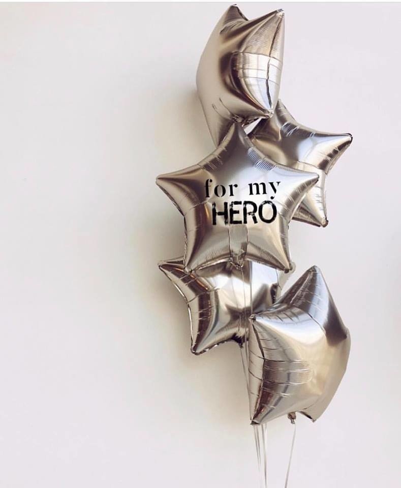 - 1 фольгированная звезда серебро сатин + (надпись можем сделать любую) (46см)
