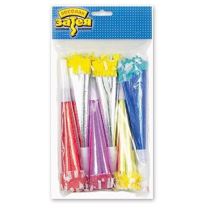 Гелиевые шары Стр Языки-гудки, горны, трубочки Стр Горн фольгированный с бахромой 6шт Стр