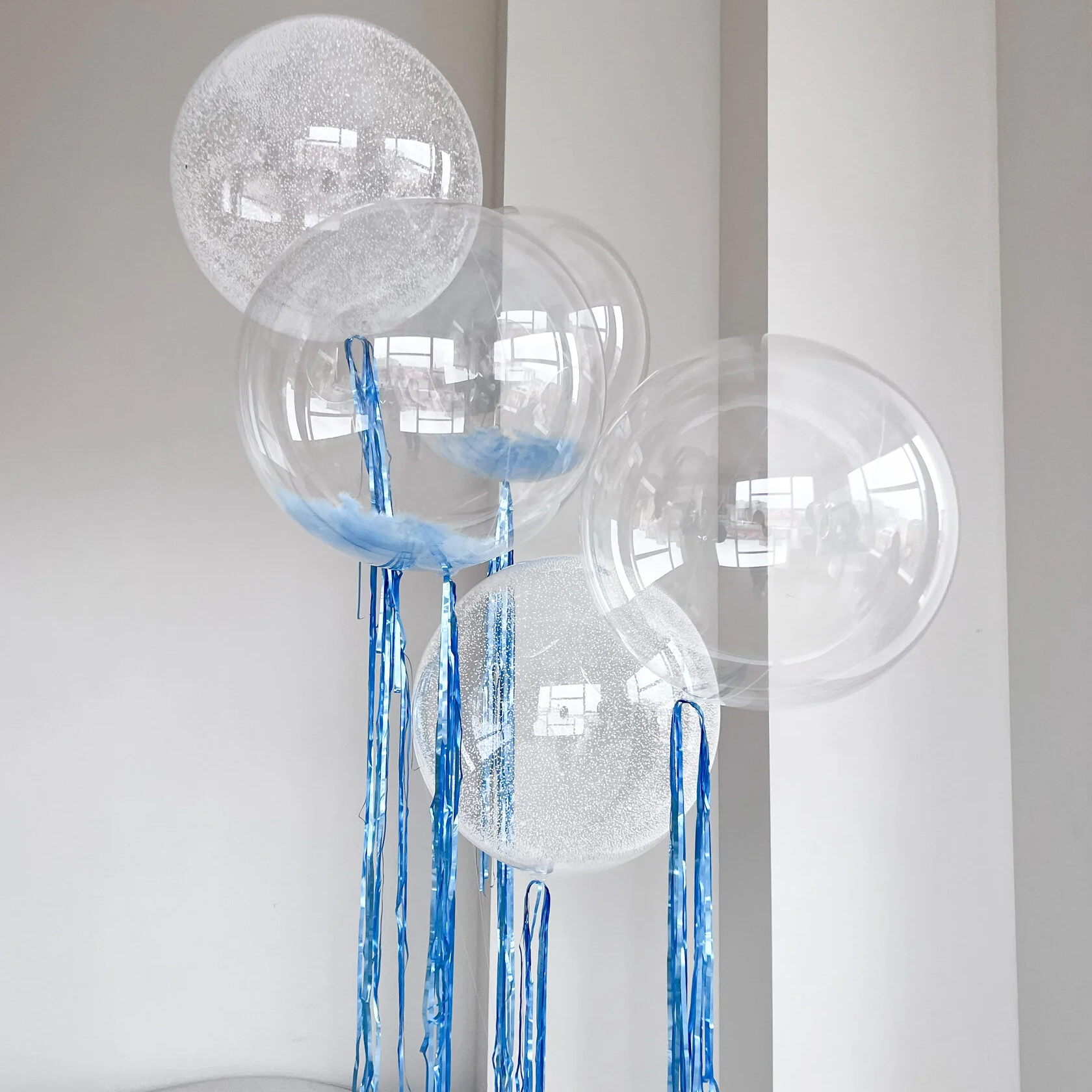 Шар Bubble (диаметр 60 см), с наполнением "пёрышки" и фольгированным хвостом - 2 шт.