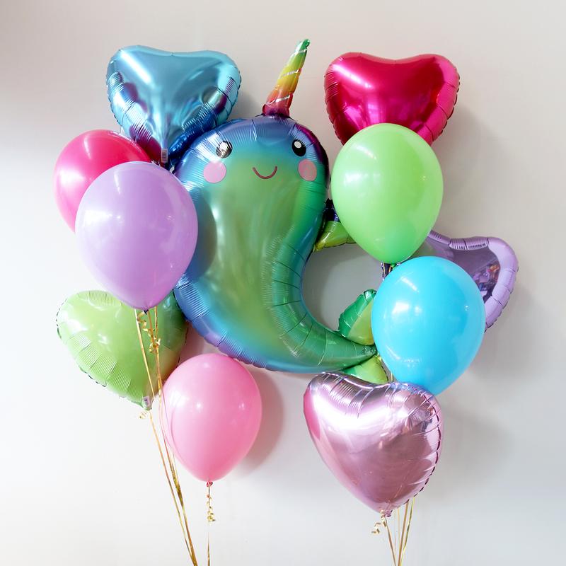 - 1 фольгированная фигура Дельфин с радужным рогом (84см)