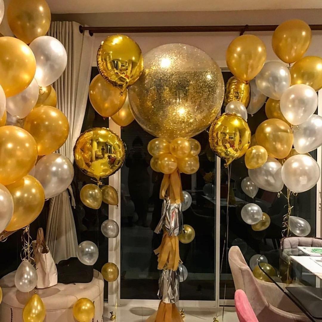 - 4 фонтана из 6 шаров белых, прозрачных,золотых Премиум (35 см) (з)