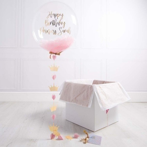 Шар Bubble с конфетти, гирляндой и надписью в коробке.