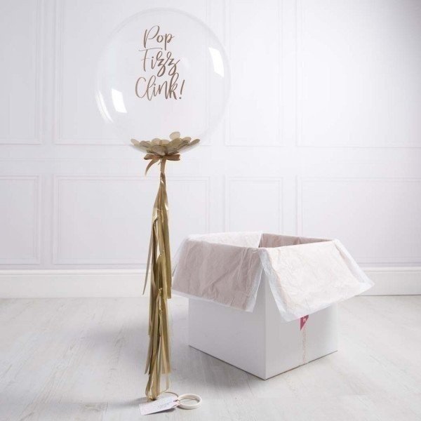 Шар Bubble с конфетти, гирляндой и надписью в коробке.