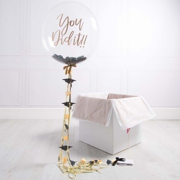 Шар Bubble с конфетти, гирляндой и надписью в коробке.