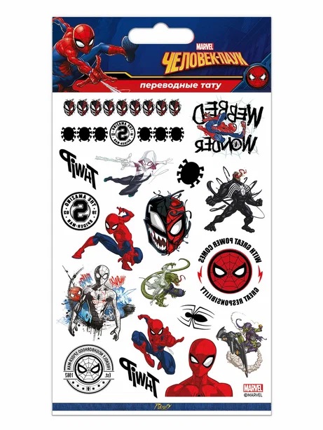 Наклейки-татуировки Человек Паук, набор №3, 11*20 см, 1 шт.