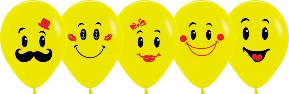 - 25 больших латексных шаров с изображением Смайлов с рожицами (35 см)