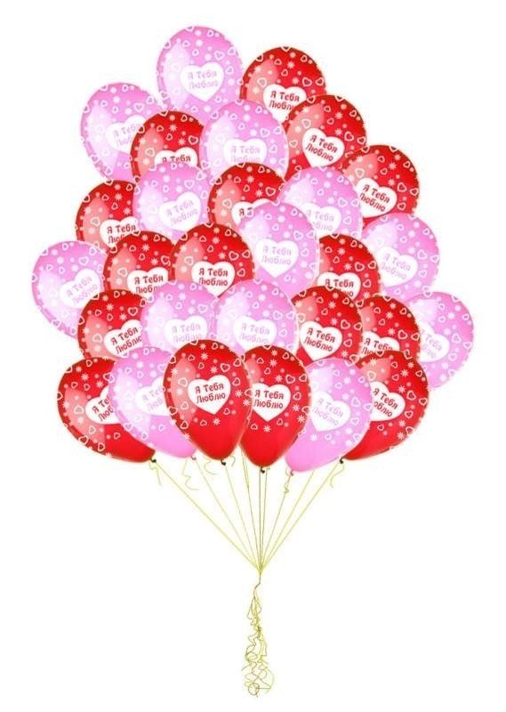- 25 больших розовых и красных шаров с мелкими сердечками, звездочками и принтом Я тебя люблю (35 см) (з)
