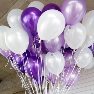 - 100 больших латексных шаров(светло-фиолетовые,тёмно фиолетовые,белые) металик Премиум (35 см) (з)