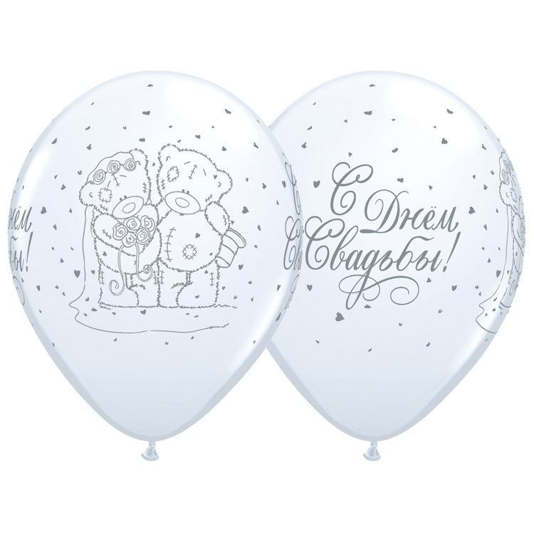 - 100 больших латексных шаров с Трогательным медвежонком Татти и его второй половинкой поздравляют вас с днем свадьбы!. Премиум (35 см) (з)