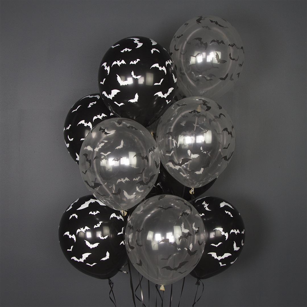 - 15 больших латексных шаров с гелием Летучие мыши Премиум (35 см) (з)