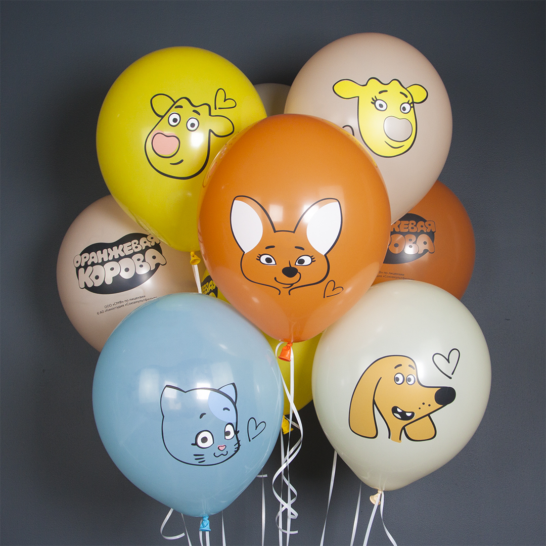 - 100 больших красивых шаров с изображением персонажа мультика Оранжевая корова (35 см) (з)
