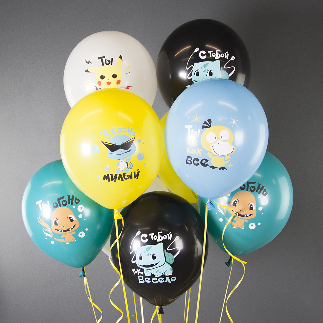 - 25 больших красивых шаров с изображением персонажами мультика покемон (35 см) (з)