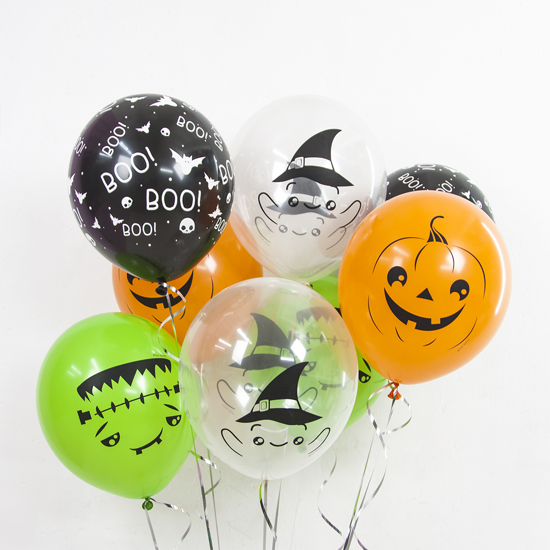 - 10 больших латексных шаров с гелием Привидения на Хэллоуин Премиум (35 см) (з)