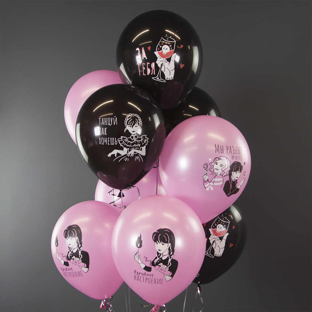 - 25 больших латексных шаров с одной стороны изображение уэнсдей, с другой надпись Премиум (35 см) (з)