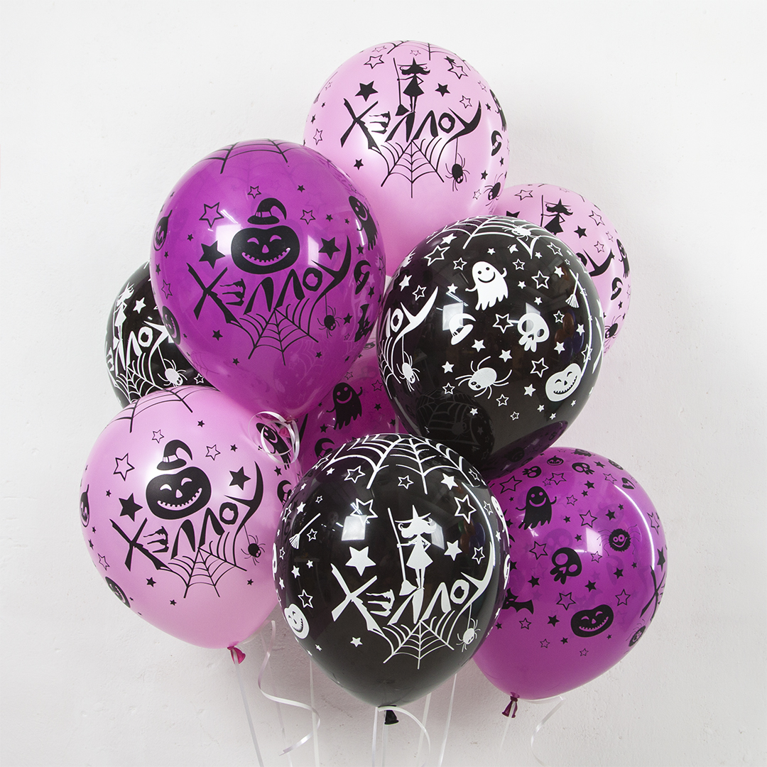 - 15 больших латексных шаров с гелием Веселый Хэллоуин Премиум (35 см) (з)