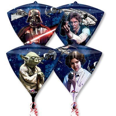 Шар в форме кристалла с персонажами Звёздных Войн предназначен для надува гелием. 3D шар состоит из 4 частей, с невидимыми швами, плотная пленка с металлизацией при надувании образует объемный многогранный кристалл. Размер шара в надуве 43 см.