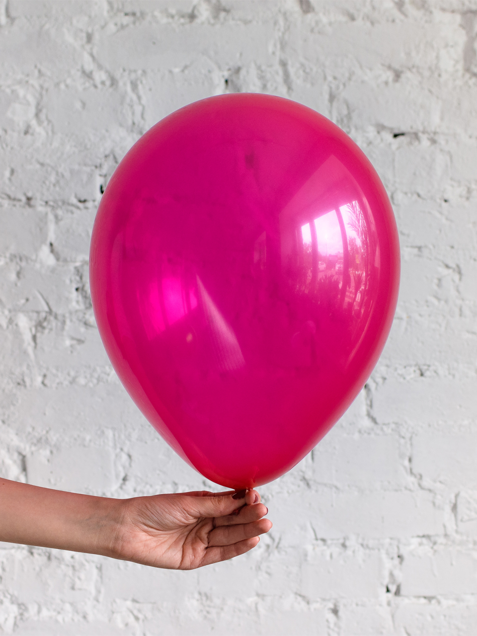 - 1 латексный шар цвета фуксия полупрозрачный на ленте.