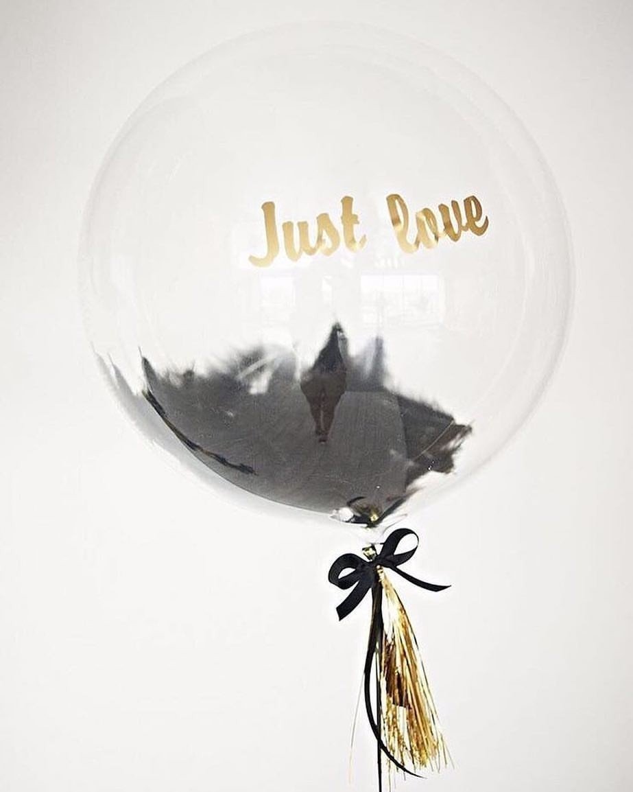 Шар прозрачный Bubble 60 см на атласной ленте, с наклейкой и перьями. Цвет, шрифт надписи и наполнение шара Вы можете изменить по своему желанию.