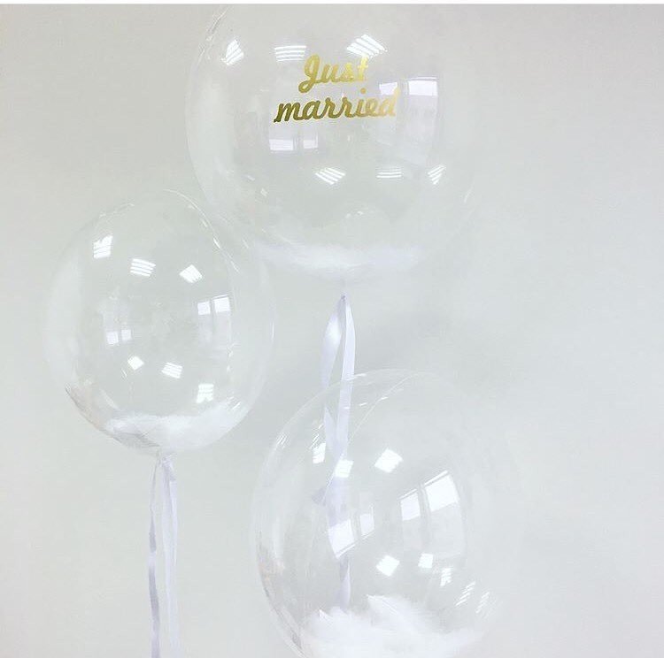Шар прозрачный Bubble 60 см на атласной ленте, с наклейкой и перьями. Цвет, шрифт надписи и наполнение шара Вы можете изменить по своему желанию.