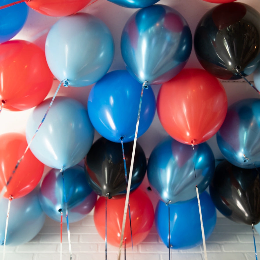 - 25 больших латексных шаров (голубые пастель,черные пастель,красные пастель, голубые хром)  Премиум (35 см) (з)