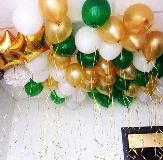 - 80 больших латексных шаров ( золотые,зеленые,белые ) металлик Премиум (35 см) (з)
