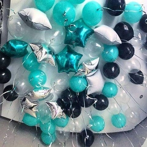 - 80 больших латексных шаров ( черные, мятные, прозрачные ) пастель Премиум (35 см) (з)