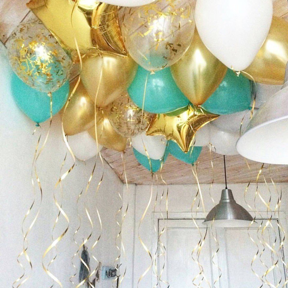 - 15 больших латексных шаров ( золотые,белые,бирюзовые ) металлик и пастель Премиум (35 см) (з)